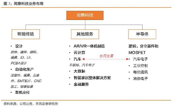 目前闻泰科技仍是手机出货量最大的手机ODM公司,为公司发展提供了稳定的现金流。但当前公司业务已不仅仅局限于手机,同时还切入VR一体式头显、AR智能眼镜、T-BOX车机系统、嵌入式智能电动汽车计算单元、笔记本电脑、服务器以及物联网设备市场。