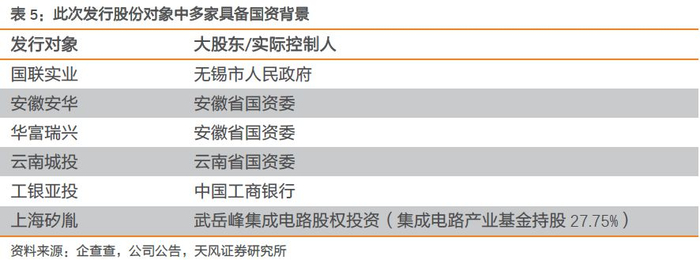 公司此次股份发行对象包括合肥中闻金泰、合肥广讯股东以及德信盛弘,多家具备国资背景,预计将作为长期战略投资者存在。此次发行对象包括:国联实业、安徽安华、华富瑞兴、深圳泽天、云南城投、鹏欣智澎、西藏风格和西藏富恒(鹏欣智澎关联方)、珠海融林、工银亚投、上海矽胤及德信盛弘,从股东来看,其中多家为国有背景,我们认为这些股东将作为公司的战略投资者长期存在。