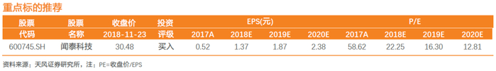 去年年底以来,公司在半导体领域动作频频。公司与上游深度整合,同时能够培养新供应链体系,因为销量的保证,芯片、内存、面板等可以获得长期稳定供货。从苹果、小米、华为等厂商的布局看,芯片已经成为竞争核心,预计闻泰会有极强的整合能力。