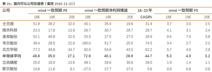 安世半导体业务部分,假设19年80%利润并表,同行业半导体可比公司19年wind一致预期均值35倍,考虑收购不确定性风险,给予PE估值区间32-35倍,则19年目标市值483.8-529.2亿元;