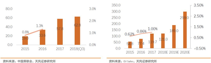 新能源汽车领域,公司增量一方面来源于安世原有客户,此外,国内新能源汽车和车联网的快速渗透也显著提升未来成长空间。安世半导体主要客户包括博世、大陆、法雷奥、德尔福等一级供应商,优质且广泛的客户资源保证了公司业务规模稳健增长。据中国乘联会、EC sales数据,中国是全球新能源车增长的主要动力,2018年我国新能源车预计销量87.9万,占全球比例接近50%,公司有望借助已有的客户基础、技术积累及本土化优势,显著受益于国内新能源汽车市场的增长。