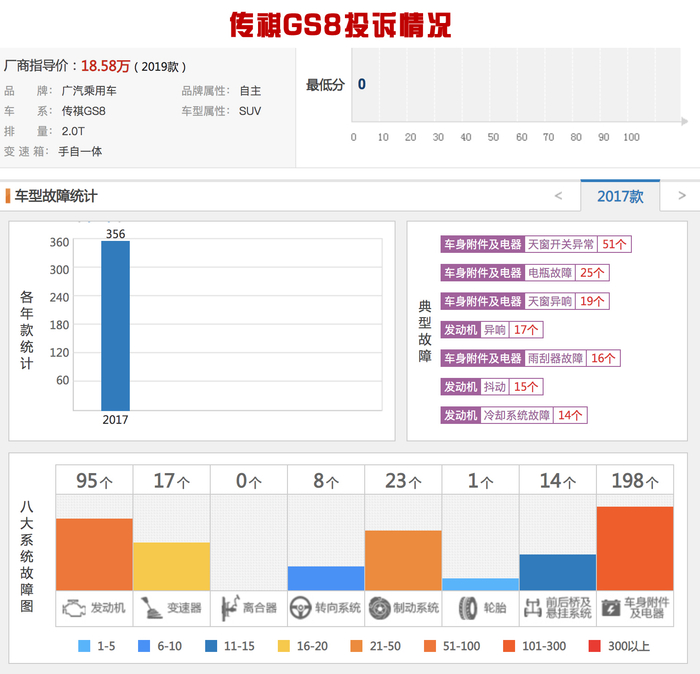 而传祺GS8似乎没有这么大的质量问题,但小毛病却是一大堆。天窗异响且无法遥控关闭、电池亏电这些问题让车主非常苦恼。而一款车型如果小毛病过多,口碑自然不会好到哪里去,销量也会受到很大的牵连。