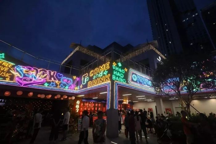 众多宵夜品牌打造“24h不夜城”酒吧主题街区:东里引进了汉阳馆—烤肉大师首家小酒馆主题店,并以独栋商业的形式提供聚会吃肉、聊天浅酌的时尚场所;同时还有南山首家火舞铁板烧,以及深圳首家烧蚝帮。另还有同仁四季音乐餐厅、木屋烧烤、渝胖子炭火蛙、台北牛扒、渝李记、福鑫记等众多深受年轻人喜爱的美食品牌。