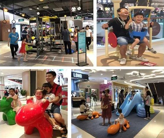 此外,购物中心场内每个楼层的走廊过道、休息区、公共空间等地方设置各类健身器材、儿童设施、互动演绎装置、小火车等100+好玩的欢乐时光项目,可供顾客免费畅玩,使空间得以充分利用起来。