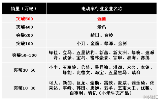 笔者将中国前50大电动车知名品牌,按2018年销售量情况分梯队排列如下: