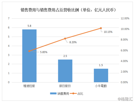 另外,值得注意的是,从销售费用占比来看,雅迪由于其巨大体量和经销商的规模性,虽产生较高的销售费用,但符合其销售总额配比,其销售占总营收比例依然是同行业最低,这说明公司并没有花多余的钱,而是每一分都花在了刀尖上。