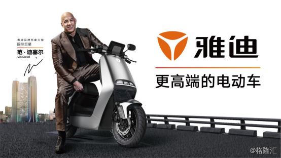今年,雅迪还签约了好莱坞明星范迪塞尔,宣布赞助好莱坞电影《极限特工4》,正式进军好莱坞市场,从在国际化布局来看,雅迪走在行业前端。