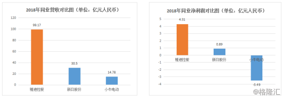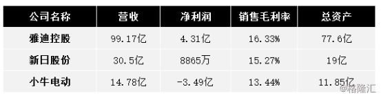 盈利能力夺行业冠军。雅迪控股放到行业来看,对比已上市的两轮电动车企业:新日股份和小牛电动,雅迪控股去年盈利能力、销售毛利率及总资产均为最高,维持第一。