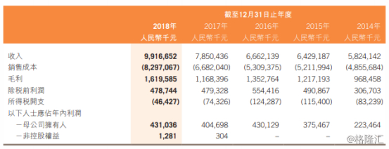 核心数据靓丽,均保持大幅增长。根据雅迪2018年年报披露,雅迪连续五年保持营收增长,截止至2018年12月31日,雅迪全年录得收入约99.17亿元人民币(单位下同),同比增长26.33%;毛利约16.20,同比增长约38.6%;归母净利润约4.31亿元,同比增长6.4%。(如下图)