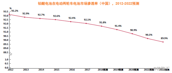 根据沙利文的报告,截止至2017年,铅酸电池市场渗透率一直维持在90%以上,近几年来,受市场和政策导向,铅酸电池受到锂电池冲击略有下降;且锂电池渗透率缓慢扩大至7.9%,但由于锂电池价格问题,其增速缓慢。