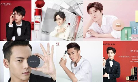 男色的商业价值还直接体现在了品牌代言上,全球主要化妆品集团在华销售的品牌,基本都有男性代言人,以巩固自己对于女性粉丝的吸引力,化妆品代言已进入“男色时代”。