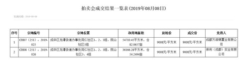 >>>两宗地的起始楼面地价均为9008元/㎡,该价格是成华区龙潭街道地块的最高起拍价。