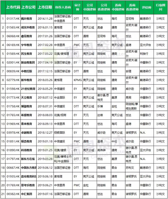 就行业顾问的表现来看,21家教育企业的行业顾问全部为弗若斯特沙利文。