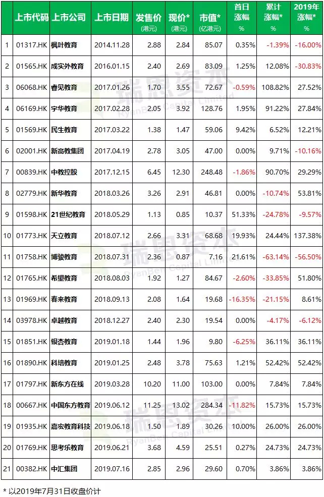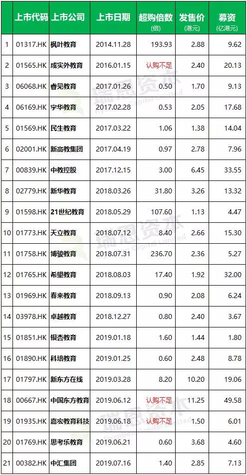 原标题:教育企业香港IPO上市盘点:中国东方教育(00667)市值最高,睿见教育(06068)股价累计涨幅最大