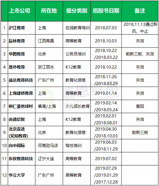 2、未上市、已递表的教育企业 (8家失效、4家正在处理中)