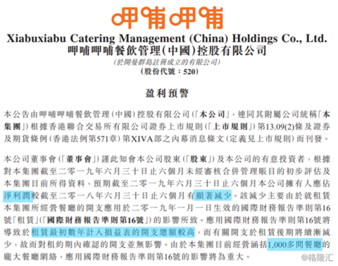 原标题:从IFRS 16 新准则到经营状况,解读呷哺呷哺(0520.HK)盈警 来源:格隆汇