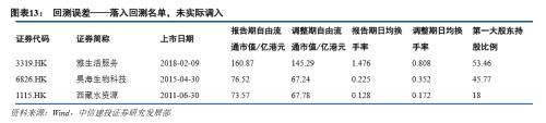在对过去两次常规半年调整进行回测后,我们认为目前使用的方法命中率较高;针对股权集中风险可能带来的误差,我们将在后文进行补充说明。