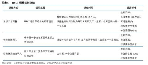此外,港股通标的调整也涉及新发的A+H股。A+H股的对应H股将在H股价格稳定期结束且对应A股上市满10个交易日后调入港股通。恒生综合指数调整机制