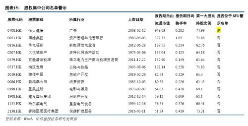 我们给出本次预测中市值与换手率达标,而股权集中度存疑的标的名单。其中恒大健康(0708.HK)已列入SFC警示名单,无可能调入恒生综指或港股通;其余11只标的若被交易所认定股权集中度合格,则也存在调入的可能。