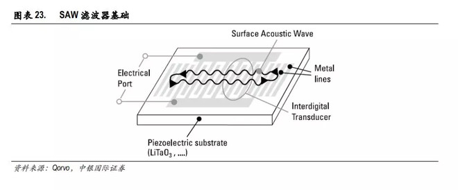 在高频工作的电子设备中,射频滤波器包括了声表面滤波器(SAW)、体声波滤波器(BAW,)、MEMS滤波器、IPD等。目前SAW滤波器和BAW滤波器是手机应用的主流滤波器。