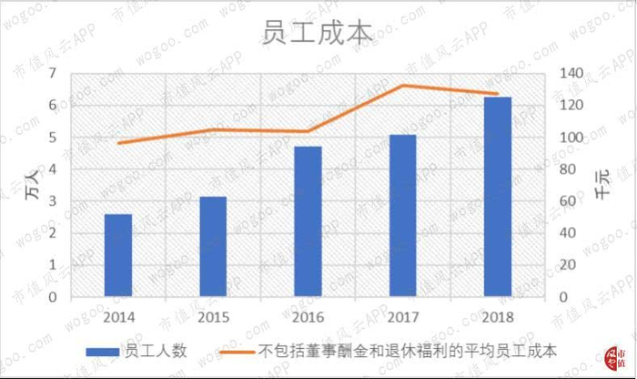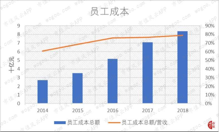 而2014年,员工成本总额占营收的比例才只有60.8%,可见增长之快。