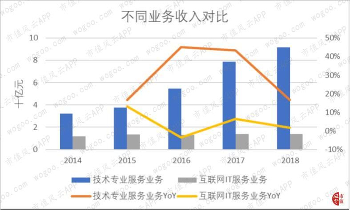 2015年,公司认为项目式开发服务(注:也称为解决方案)和外包服务的界限正在变得模糊,并根据客户类型将业务重新划分为技术与专业服务集团(TPG)和互联网IT服务集团(IIG)。