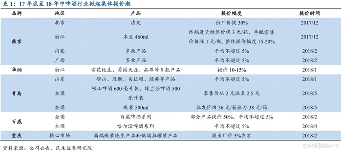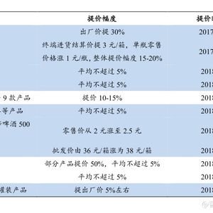 随着产量的日渐触顶以及成本处于高位,啤酒行业的产品升级趋势也日益明显。近日,民生证券研报中的一组数据也显示,一场啤酒行业的提价潮正由去年掀起。