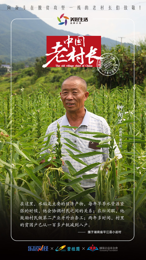 编者按:他们,是美好乡村的“守护者”、脱贫建设的“领路人”。他们扎根基层,架起村民、政府、企业等多方沟通的桥梁。2019年5月20日起,乐居财经联合碧桂园推出“凤凰涅槃‘1+x’计划”,奔赴9省14县,对话“中国老村长”,挖掘一线脱贫攻坚的奋斗故事,献礼新中国成立70年。本期【中国老村长】湖南省平江县加义镇小岩村 “老村长”钟南生。