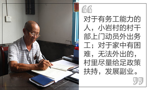 但脱贫工作不能等,如何“抓重点,破难点,夺取脱贫攻坚全面胜利”。对于有务工能力的人,小岩村的村干部上门动员外出务工;对于家中有困难,无法外出的,村里尽量给足政策扶持,发展副业。