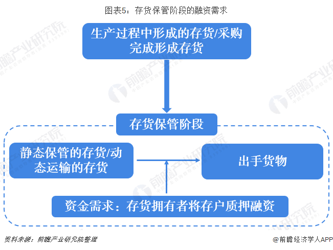 从采购到位至销售完毕,或者生产阶段至销售完毕,均存在一定的时间差,这时候货物资产处于存货保管阶段。存货保管阶段除了在企业自有仓库存放,还可能在物流企业或者港口企业的仓库保存。此外,存货除了静态的存放,也可能表现为处于运输途中的动态阶段。