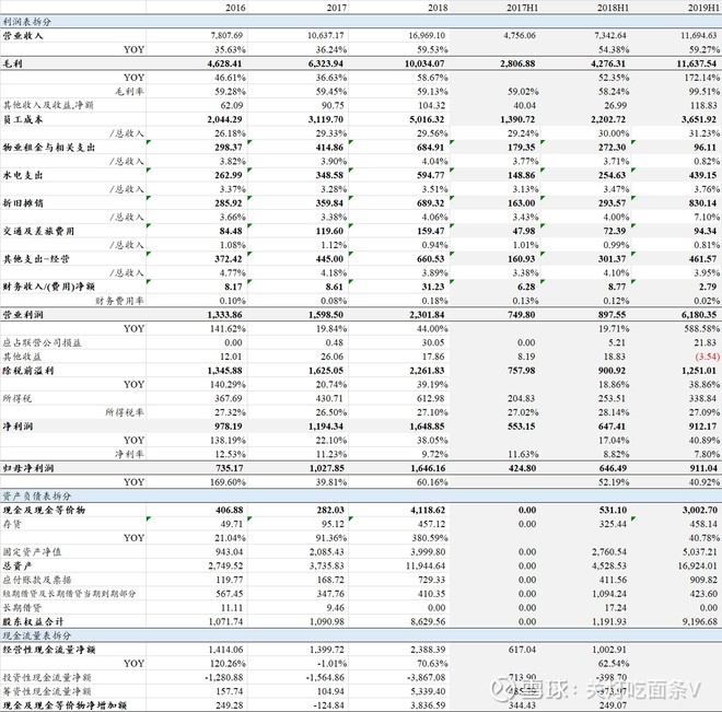 3.新技术应用:19H1实现了3家店机械臂的应用,3家店配锅机的应用,179家店传菜机器人的应用,IKMS系统在9家门店应用,洗碗机在202家门店推广,除渣机在118家门店推广,未来会继续在新技术方面做大量投入。