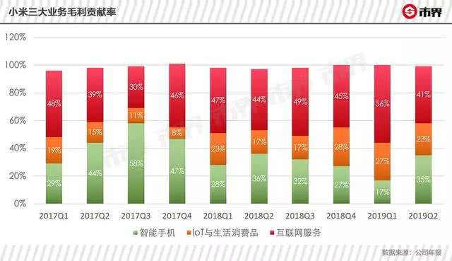 但IoT市场则完全不同,当前智能电视、空调、手环、滑板车、净水器等一系列IoT产品的市场需求均在快速增长。就小米而言,其相关业务由2018年半年度的22.7%上涨至2019年上半年的28.2%,有效承担了全球市场存量竞争中的压力。
