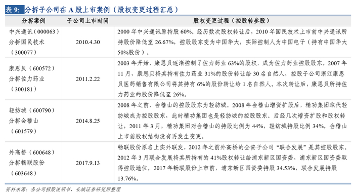 长城证券研报认为,截至目前,分拆子公司在A股上市的成功案例都是以“控股转参股”的形式来实现的。