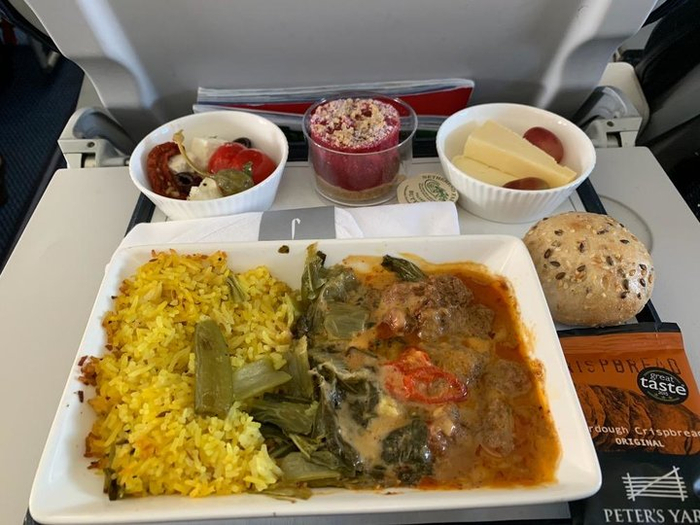 比上不足比下有余,这话说的大概就是国内三大航了。那么「上」又是怎么做的呢?欧洲航司虽然境内航线商务舱挂羊头卖狗肉,但在吃上面不敢含糊,至少商务舱可以保证正餐,连向来被黑得很惨的英航都能下午起飞的 2 小时的航线中提供一顿热食,更不用说中东几家土豪航司了,阿曼航空连 40 分钟的航班都不敢怠慢。