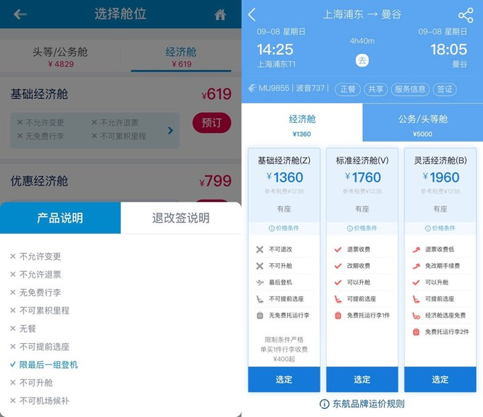 不过,与其说国内航司在向欧美同行看齐,不如说是朝着廉航方向发展。没买对航班和舱位,不仅机上要饿肚子,连行李都没得托运。前不久东航和南航相继推出基础经济舱产品,座位本身和普通经济舱完全一致,但票价更低,却有不可退改、无免费行李托运、不可提前选座等限制,南航甚至连舱位和航段累积都没有,是不是看着有点眼熟?这不就是廉航吗?