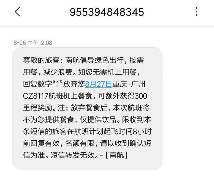 相比国航和东航,南航的做法要委婉得多,并没有简单粗暴地砍掉餐食,而是鼓励乘客主动放弃用餐并根据舱位予以 300 到 500 不等的里程奖励,里程价值不高,但至少体现了诚意,不像前两家服务餐食缩水了,票价却纹丝不动,这也是令乘客不满的地方。