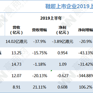 尽管各鞋履企业积极推出各种转型调整措施,但上半年普遍仍未走出业绩低迷的状况,下面具体看看各家企业2019年中期数据报告。