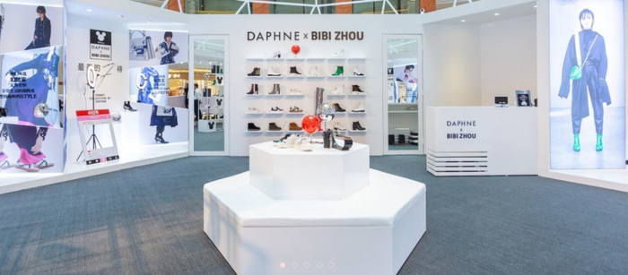 2017年开始,达芙妮更新了门店,更换了logo,用简约的英文DAPHNE代替了原来的花型设计。为了吸引年轻消费者,达芙妮与美国潮流品牌Opening Ceremony合作推出系列产品。去年,还联合周笔畅和迪士尼推出跨界系列产品。