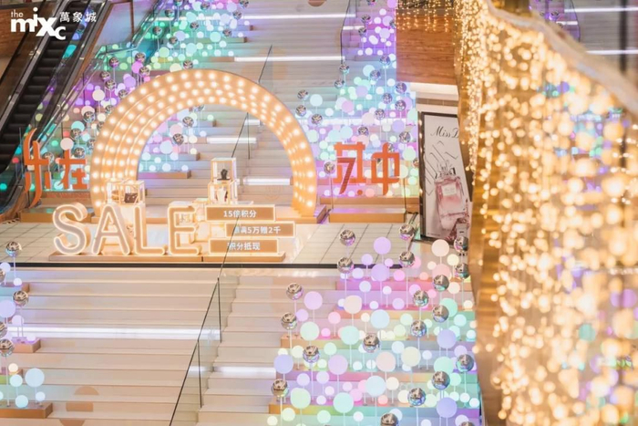 比如,南宁万象城六周年之际,以“盛世双城 环梦万象”为主题,用暖黄色的热气球,照亮回家的道路,温暖着城市夜归人的心;今年的7周年庆延续了以往的温暖与陪伴,以“乐在其中”为主题,铺满了近千盏定制光球,编织起一片如梦如幻的荧光海洋。