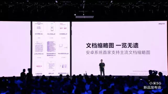 功能方面,MIUI 11新增了工作套件,可以跨品牌互传文件,横跨小米OPPO、vivo手机品牌,也可以在小米手机和小米笔记本之间;新增了全新文件管理器,支持文档缩略图和文档直接查看,号称为“电脑级的文档查看体验”;还内置了文档投屏功能,可以在电视上轻松演示文档,支持市面上主流的电视品牌,小米电视无网也能投屏——当然也支持无线打印。