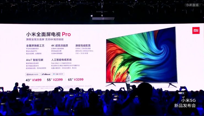 小米全面屏电视Pro:支持8K视频解码,1499元起。
