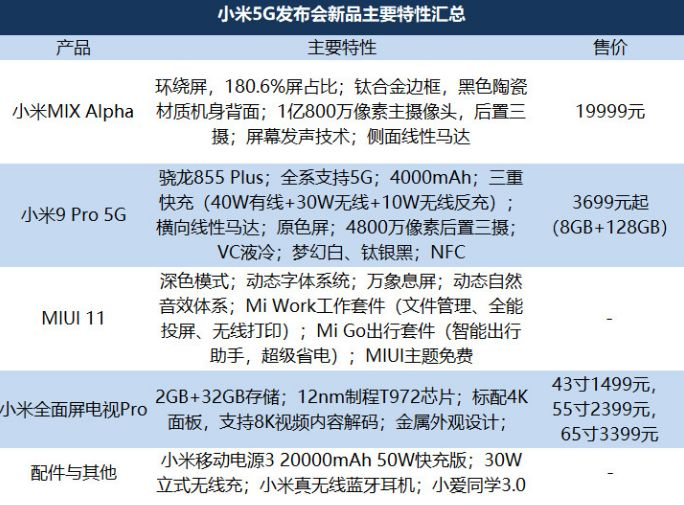 小米 MIX Alpha:环绕屏,一亿像素技术,售价19999元。