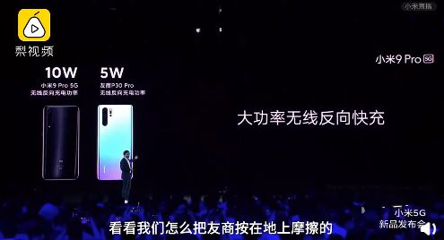 雷军表示,小米9 Pro支持10W无线反充,可以给iPhone充电,但充得慢是因为iPhone只支持7.5W。另外,雷军还提到,小米无线反向快充比华为快一倍,因为华为是5W的,“看我们怎么把友商按在地上摩擦”。