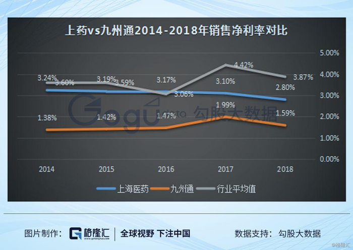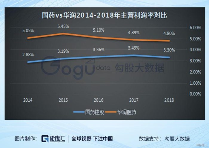 由于国药控股和华润医药属于港股,所以财报方面会以主营利润率为数据对比,而上海医药和九州通则用销售净利率和毛利率来对比。