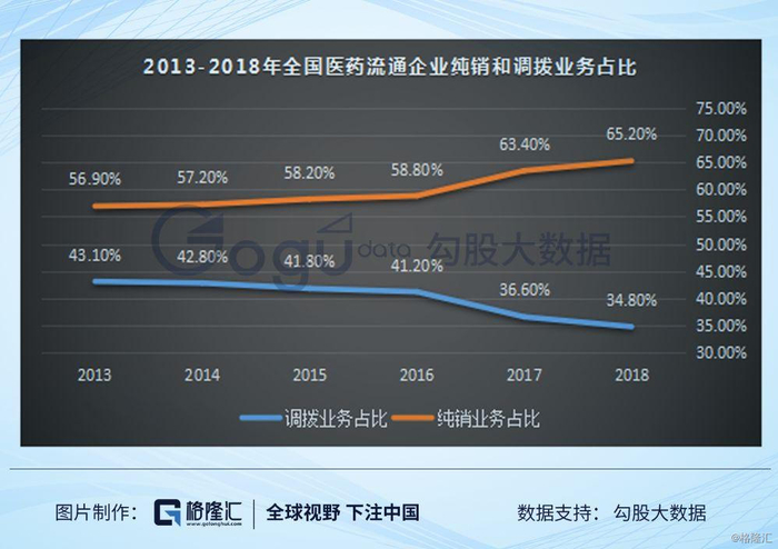 而国药控股的直销业务之所以占比较大,是因为最近两年“两票制”全面推行的影响,导致各大药企为了更快覆盖终端消费者都调整了战略,从原来的调拨模式开始转向纯销模式(直销模式)。虽然纯销模式的毛利率高于调拨模式,但是需要通过不断花重金“并购”的方式来“求快”,就很容易使得公司的现金流出现问题。