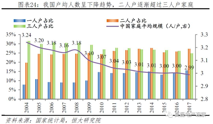 家庭结构变化导致家庭规模持续小型化,裂生出更多住房需求。