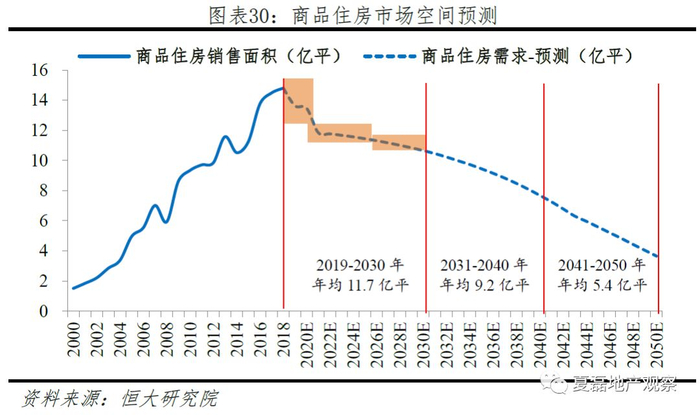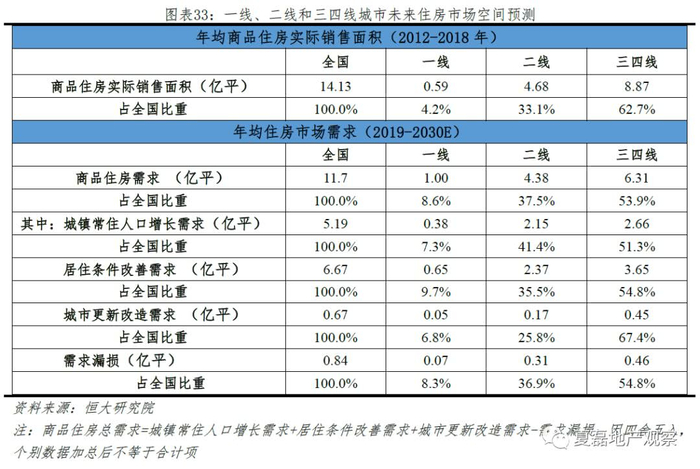 分阶段看,商品房市场空间仍可稳固保持10年以上。2019-2030年,全国商品住房需求年均11.7亿平,超过2013年全国商品住房销售面积。其中,2019-2020年、2021-2025、2026-2030年年均分别为13.6亿平、11.6亿平和11.0亿平,相当于2016、2013和2015年全国商品住房销售面积。