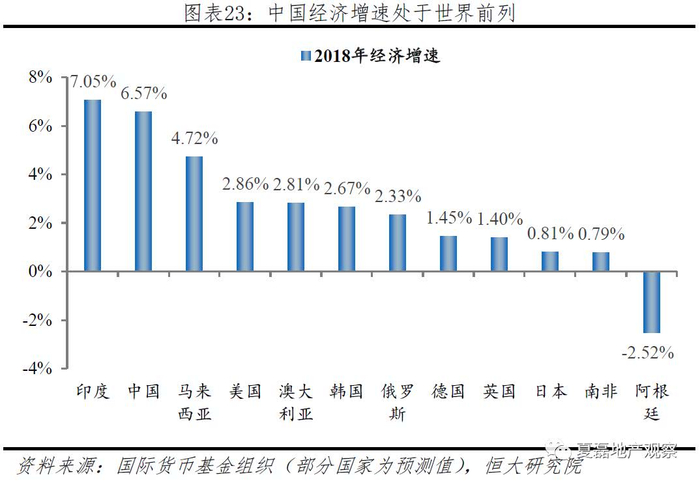 我国经济基数低、增速快,未来增长空间大。未来经济增长将带动居民住房消费持续增加。1978-2018年,我国GDP从不足4000亿增长至90万亿元,40年内增长约245倍。经济发展取得举世瞩目成绩的同时仍存在巨大潜力,虽然GDP总量位居世界第二,但人均GDP仅为9771美元,不足美国的1/6,日本的1/4;2018年,我国实际经济增速6.6%,增速换挡后仍处于世界前列。