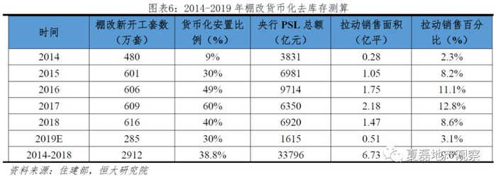 第一,棚改货币化安置红利逐步退出。2014年起棚改货币化安置比例大幅提升,我们测算,2014-2018年棚改货币化安置共拉动商品房销售面积6.73亿平,占销售面积的9%。从2018年起,棚改货币化对房地产销售的拉动作用逐步降低。一是货币化安置比例降低。棚改融资方式由PSL支持下的棚改专项贷款转为棚改专项债,融资规模大幅减少,货币化安置比例随之降低。二是新开工减少。2019年棚改新开工套数285.3万套,比2018年实际新开工套数减少54.5%;根据《国家新型城镇化规划(2014-2020年)》,到2020年基本完成城市棚户区改造的任务。