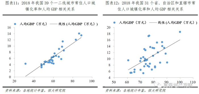 区域经济发展不平衡推动人口从经济发展水平较低的地区向经济发展水平较高的地区迁移。我国39个一二线城市2018年常住人口城镇化率和人均GDP相关系数高达0.88,31个省、自治区和直辖市的两个指标则相关系数达0.57。2000-2015年城-城流动人口占比从20.8%持续增加至37.9%。未来,人口将继续向经济发达区域中心城市和城市群聚集。